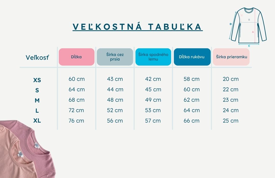 Veľkostnú tabuľku si pohodlne pozrite nad výberom farby produktu.