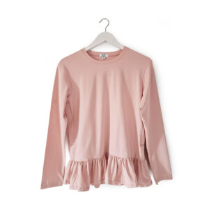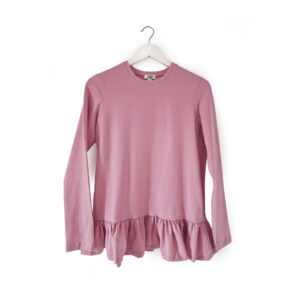Zateplené tričko s volánom na dojčenie s dlhým rukávom a skrytými zipsami po bokoch. Pohodlné, minimalistické a ušité zo zatepleného bavlneného úpletu.