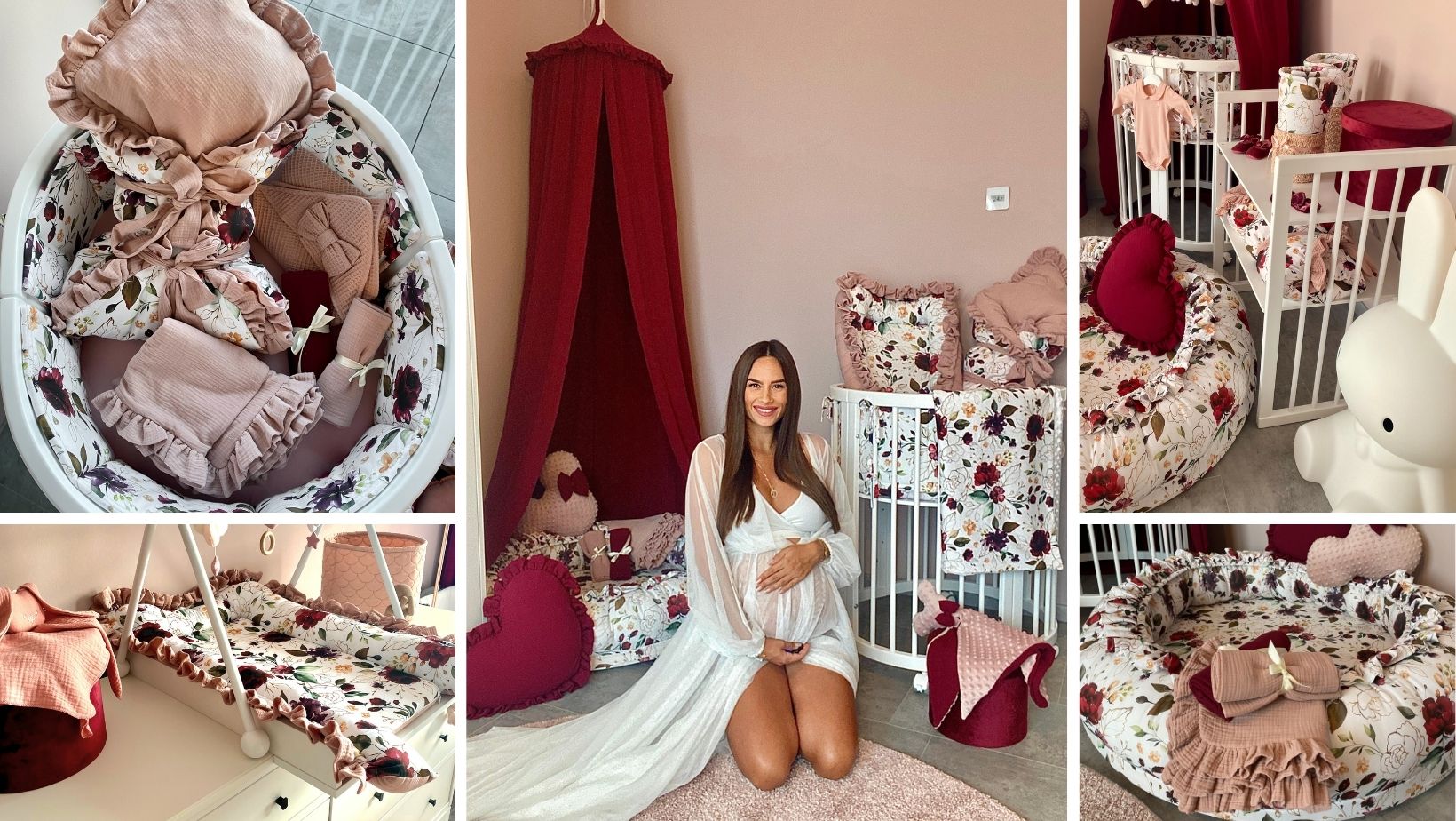 Originálna, troška extravagantná ale stále dokonale vkusná. Presne taká mala byť výbavička Natálie Glosikovej pre jej prvorodenú dcérku. Základ tvorí výrazný vzor burgundy kvetov, ktorý sme ešte viac podtrhli bordovou a vyvážili a zjemnili staroružovou. Vznikla z toho naozaj neopozeraná a výrazná výbavička, ktorou veríme, že sa inšpirujete aj vy 🙂